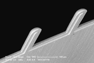 The PELCO FIB Lift-Out Half Grid is made of stiff copper beryllium with a thickness of 100 m.