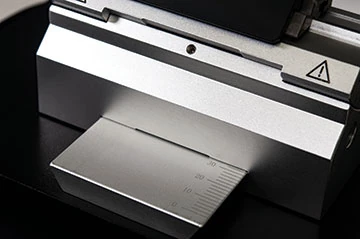 The dovetail base has gradation markings on the right side so that the desired position of the knife stage may be precisely identified.