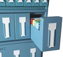 At the front of the cabinet drawer is a purpose-built slot which holds an archive label.