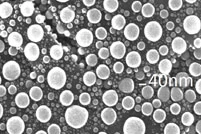 Dispersion of tin spheres on a carbon substrate. Approximate size range of 20 - 400nm.