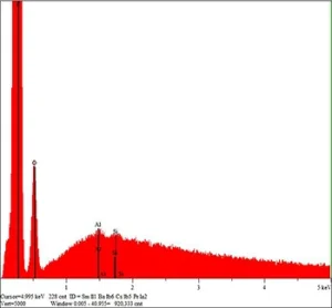 Small impurities of Cu, Si, Sb, S, Na, P and very small impurities of Fe and Mg can be found.