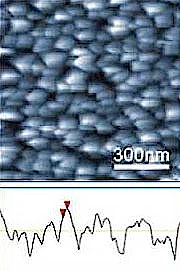 This product is intended for checking the tip sharpness (not height calibration); AFM tips wear down and can get damaged resulting in blurry lines, especially at the nano scale. For example, a worn tip would have the cobalt particles looking oblong rather than round. The second feature of this product is in helping the microscopist get down to the nanoscale. having a uniform coverage of nanoscale features, you know what to look for and what to expect.