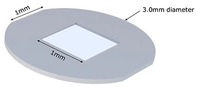 The edges of these silicon frames are specially truncated with two parallel flats, which act as an aid for specimen alignment in Correlative Light & Electron Microscopy (CLEM) experiments.