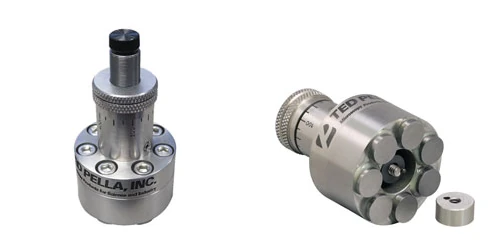 The PELCO® 14500 Lapping Fixture is micrometer-controlled and marked in 25 micron increments. It can accommodate samples up to 0.5" (13mm) in diameter, and 0.5" (13mm) in height.