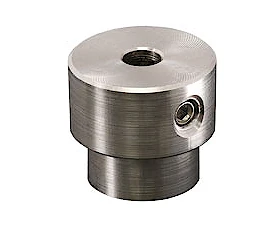 The sample mount is threaded and easily removable for wax or adhesive mounting. The carbide foot is replaceable and the diameter of the fixture base is 1.5" (38mm).