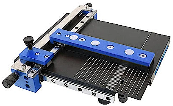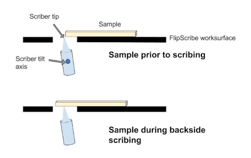 It integrates a robust diamond scribe into a sample platform with a fence guide design. The time required to align and scribe is about 1 minute. It allows users to accurately position the scribe mark relative to features on the front side, visualized either by eye or with a user-supplied high magnification microscope.