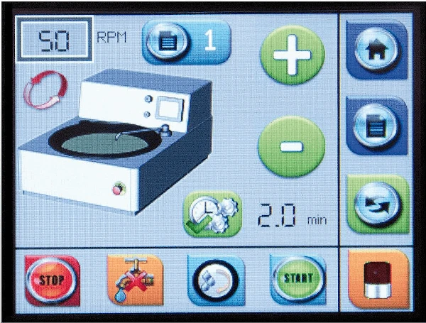 | Controls | 3,5“ touch screen to control the machine: start/stop, timer, speed and direction of plate, water solenoid valve |