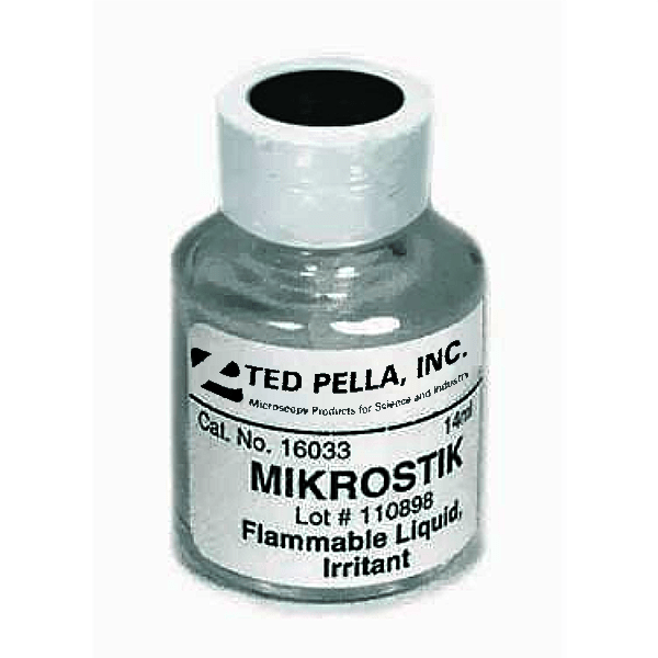 Heavier and/or larger specimens, which might move during study when held with a tape or disc adhesive, will hold firmly in place when this type of adhesive is used to “seat” the specimen.
