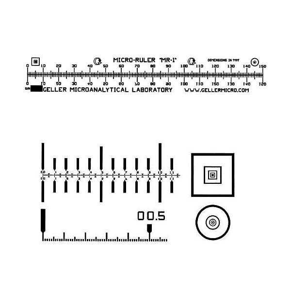 The Micro-Ruler MR-1 is manufactured with anti-reflective chromium (30nm Cr2O3 over 70nm Cr) on soda-lime glass using highly accurate semiconductor manufacturing equipment.