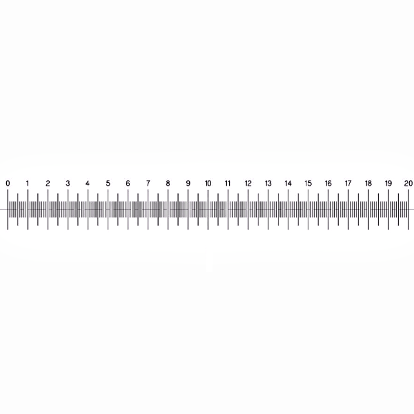 MVertical Scale Fine VariableX63 / Y2Scale length 10mm.5mm in 0.5mm divisions; line width 20 m. 4mm in 0.1mm divisions; line width 10 m. 1mm in 0.01mm divisions; line width 3 m