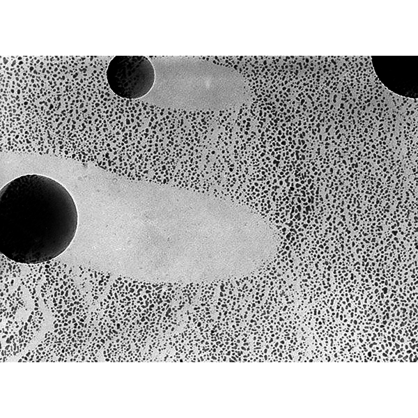 The Agar Scientific perforated carbon films yield holes small enough to be imaged at an instrumental magnification of x200,000.