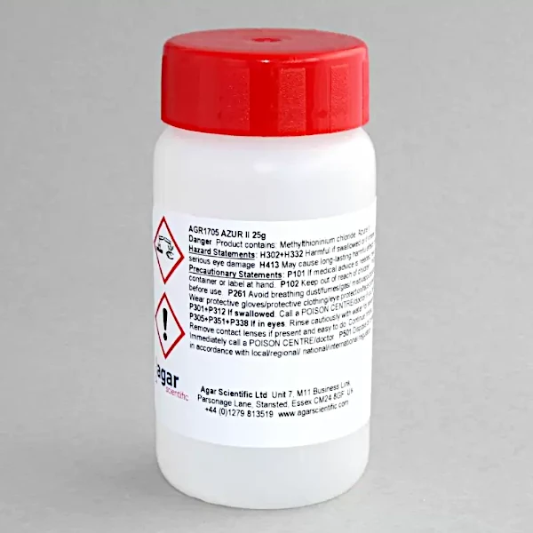 Azur II is a dry dye for the preparation of colour staining solution used for the staining of blood and bone marrow smears of human origin.