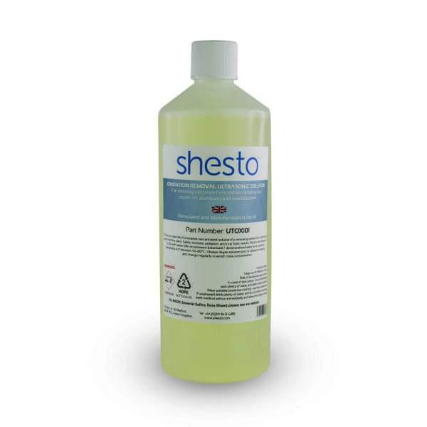 A concentrated ultrasonic cleaner fluid designed in the UK to clean and remove oxidation from metals including iron, copper, tin, aluminium and stainless steel.