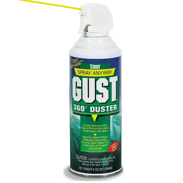 GUST 360 Spray Anyway Duster lets you spray from any angle – even upside down- without frosting.