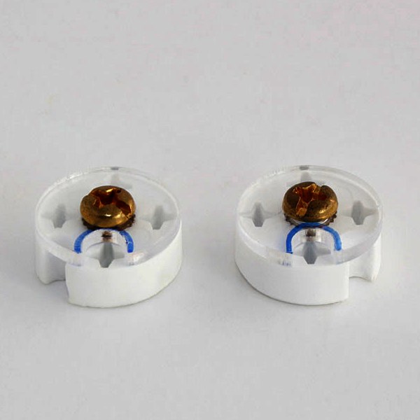 4-hole Cryo-EM grid storage box. Round shape to fit FEI Vitrobot with brass screw and threaded insert.