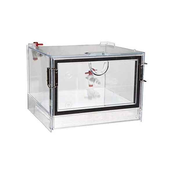 Useful for tissue culture work where a controlled carbon dioxide atmosphere is required or for flooding the chamber with nitrogen to eliminate oxygen.