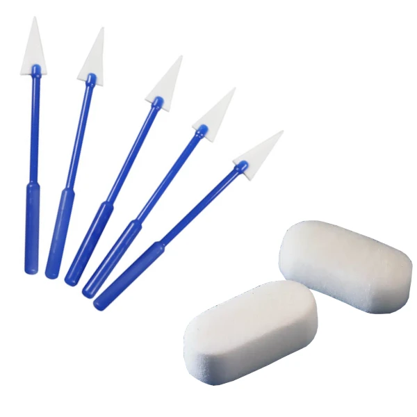 The sponge type material stays rigid when using alcohol as cleaning fluid and assists in removing debris from the knife edge.