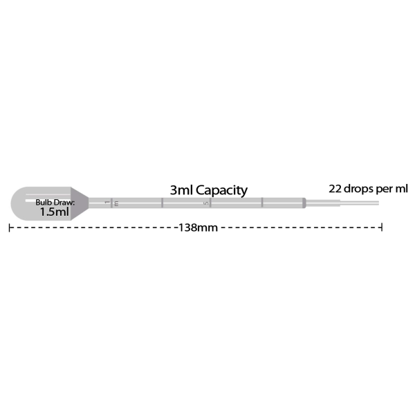 | 2262-3 | Plastic Pasteur Pipettes, 3ml, graduated to 1ml, short bulb, STERILE, individually wrapped | 500 | € 91,50 |