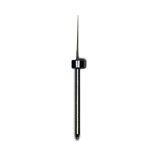 Tungsten tip with stainless steel shank, smaller collar, tip radius is 0.5 m with an 8-10 taper angle.