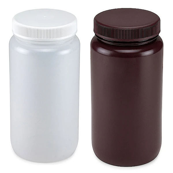 - Wide mouth provides easy filling and access to bulk reagents and large samples