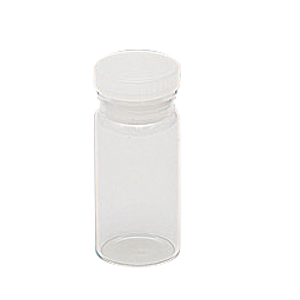 Clear borosilicate glass vial with “natural” colored polyethylene snap caps.