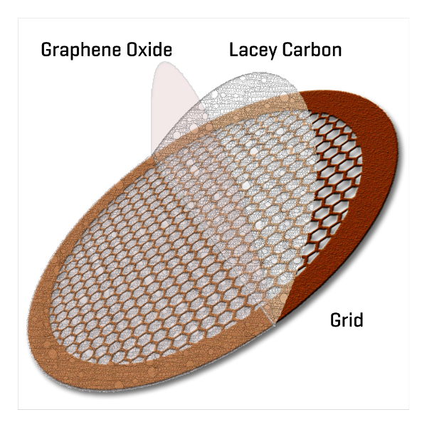 The basic structure is the same as the graphene TEM supports; Lacey carbon on a 300mesh Cu grid and on top of the Lacey carbon is the graphene oxide.