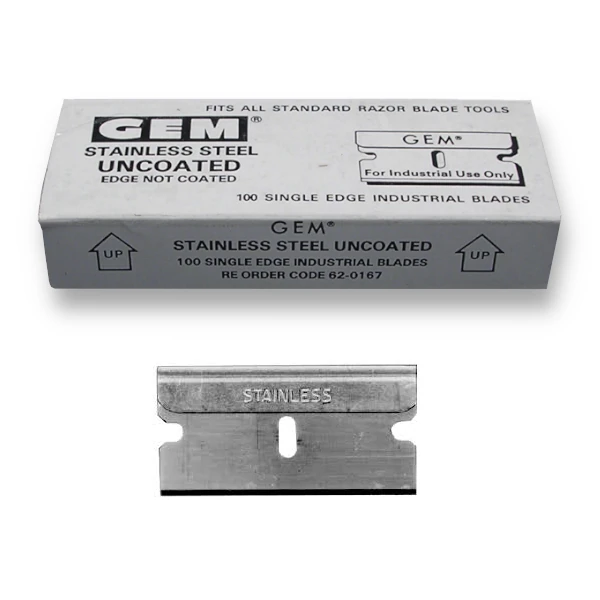 | 121-22 | GEM Single Edge, Stainless Steel Dispenser Blades, in 10 blade dispensers, pkg/5 dispensers (50 blades) | Each | € 55,20 |