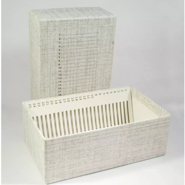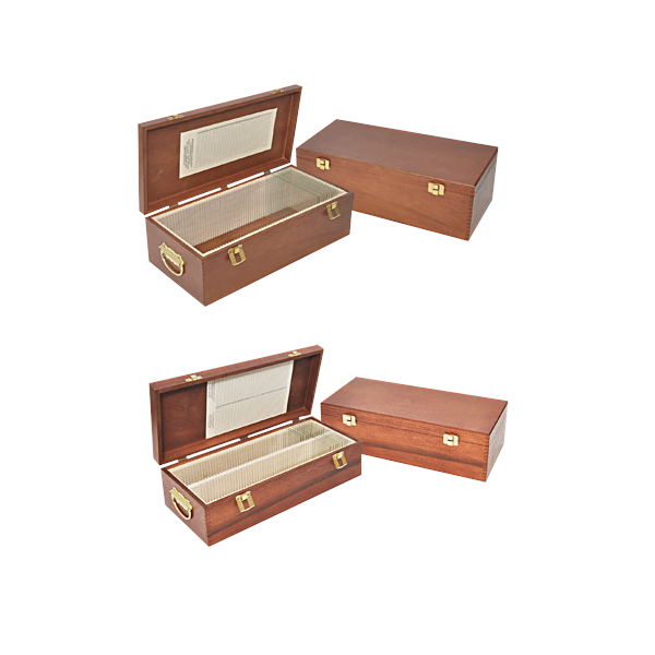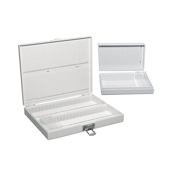 Can hold up to 100 microscope slides in 50 individual numbered slots.
