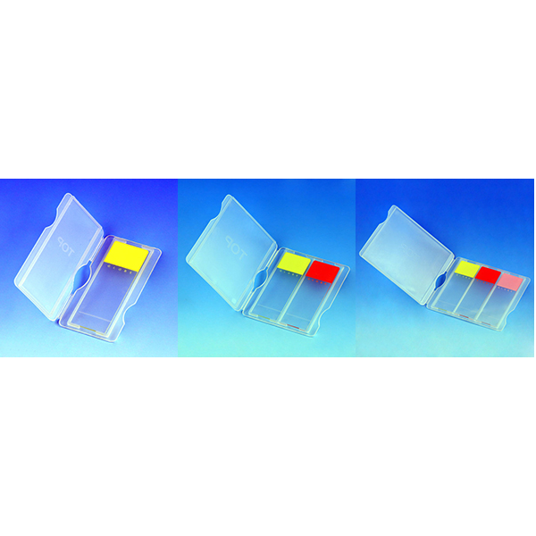 Dimensions: 75 W x 125 D x 25mm H (3 x 5 x 1″), space for slide 2.9mm, wall thickness between slides 1.6mm.