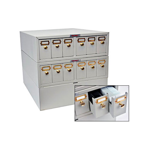 At the front of the cabinet drawer is a purpose-built slot which holds an archive label.