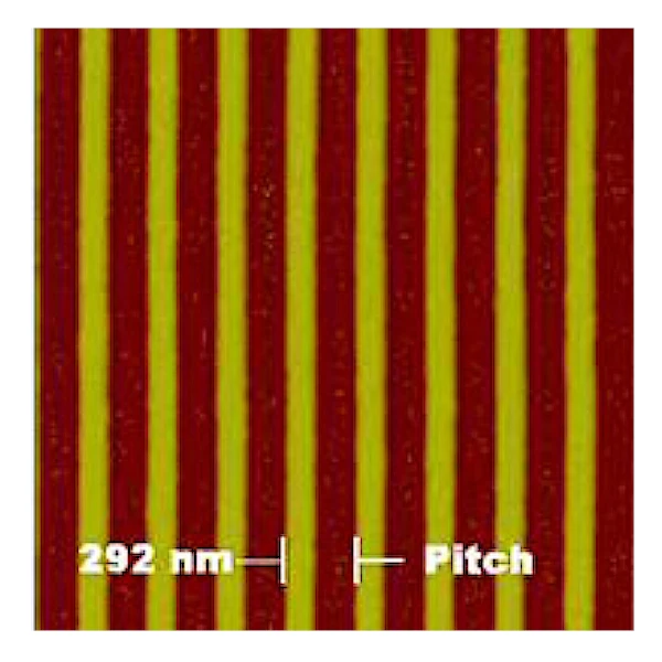 Precision, holographic patterns, provide accurate calibration and feature high stability and usability. Moderate ridge heights are convenient for AFM. Specimens provide good contrast for secondary and backscatter imaging with SEM.