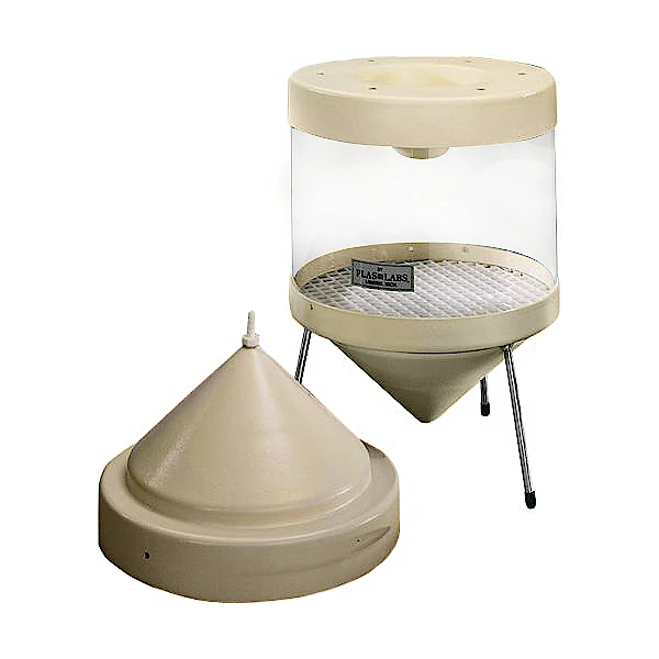 This is the only available unit which can be used as a free flow or sealed system. The chamber may be used as an open or closed system. If an open system (free flow of air) is desired, align the holes on the top cone with the main clear cylinder. If not, misalign the holes to affect the closed system. Once misaligned, simply tape the top and the bottom to the main cylinder.