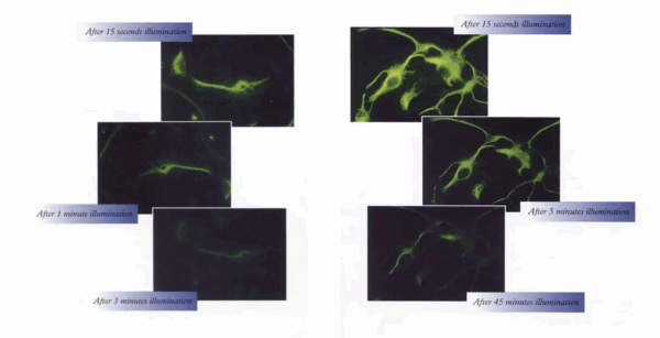 The use of fluorescent labels and markers is widespread and immunofluorescence, which relies on the use of antibodies tagged with labels such as fluorescein, is a well-established technique. A common problem associated with the microscopical examination of these materials is that the illumination used for stimulating the fluorescence also causes degradation of the label and this causes fading of fluorescence. This is also a problem when trying to visualise materials having a low level of labelling. The photofading of labelled materials can be retarded by the use of the Citifluor mountants. They are also useful for rhodamine and DAPI.