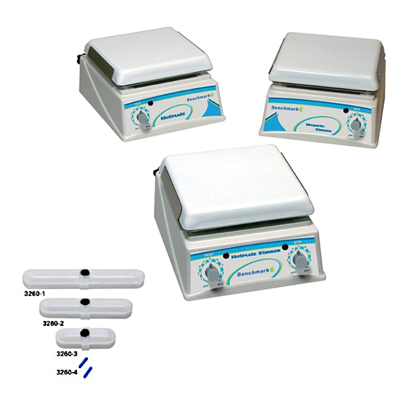 Benchmark Hotplate Magnetic Stirrer Benchmark hot plates, magnetic stirrers and hot plate-stirrers feature an exceptionally durable, chemical resistant white ceramic work surface. Their space-efficient design (20.3 x 22.9cm [8″ x 9″] footprint), makes them ideal for use on crowded benchtops and inside of bio-hoods.