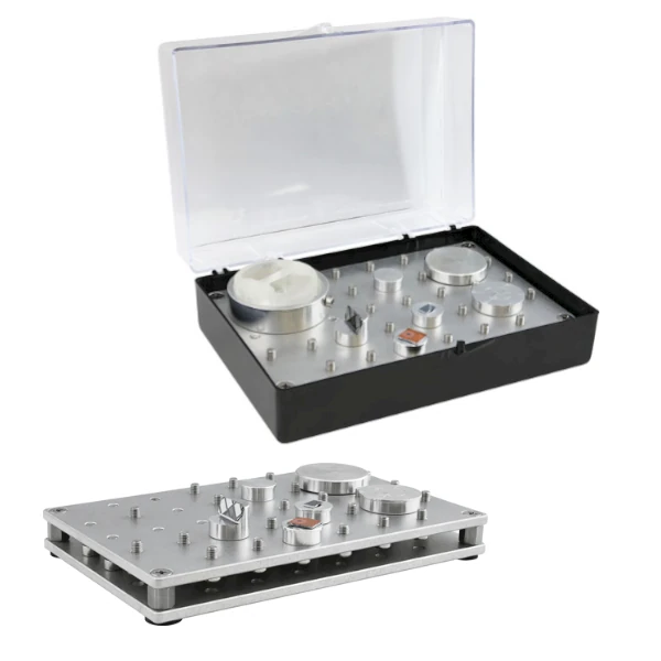 Fold-up insert which accepts 8 specimen mounts: 12.7mm (1/2″) head, 3.2mm (1/8″) pin.