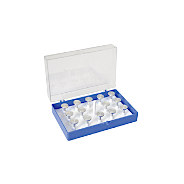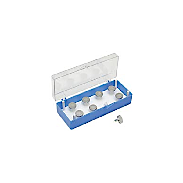 Storage under vacuum eliminates contamination or dust. Allows for a 10mm (3/8″) specimen height on the pin stubs.