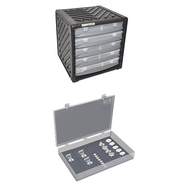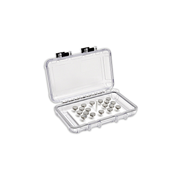 Storage Box and Holder for 14 of 12.7mm dia. or 8 of 25mm pin mounts ( 3.2mm – 1/8″ pin).