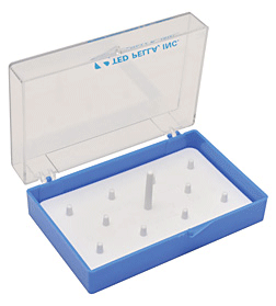 Convenient for temporary benchtop storage of in-process samples. The clear cover is made of ABS plastic and the blue base is made of high impact polystyrene plastic. Shown with Multi Pin Stub Holder #15413 and various pin stubs, available separately