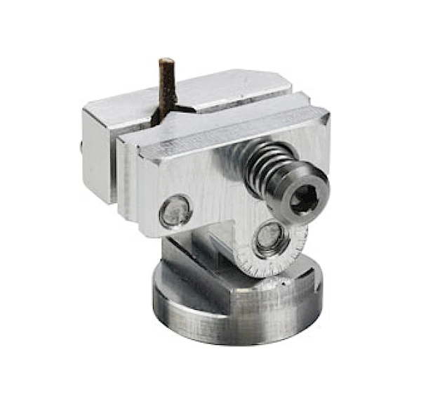 This spring-closing vise mount allows for easy clamping and tilting of small rod or fiber samples up to 3mm (0.12″) in diameter.