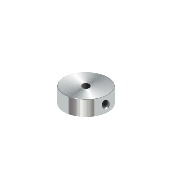 31mm diameter, 6mm height. Material: machined aluminum with stainless steel screw.
