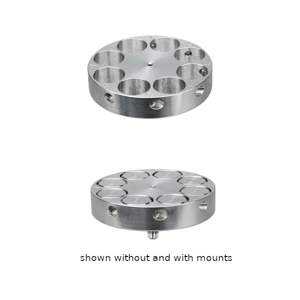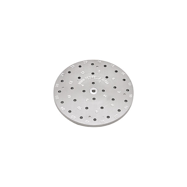 Holds up to eight Ø12.2mm or Ø12.5mm JEOL cylinder mounts (#16231 and 16232).