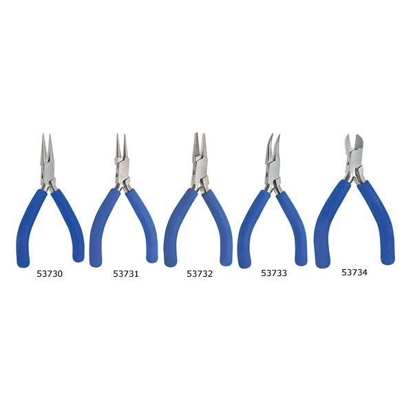 Selection of chain, nose, round nose, flat nose, bent chain nose and side cutter or a set with all five pliers in a vinyl pouch.