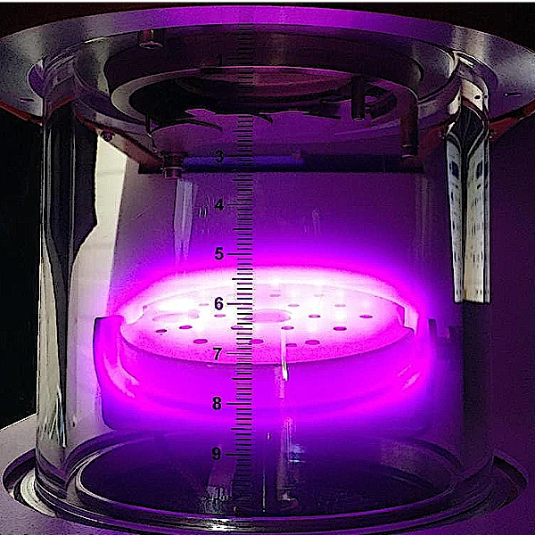 With air plasma it is possible to turn a thin carbon layer from hydrophobic to hydrophilic for example. The adjustable process pressure ranges from 2 E-1 mbar to 1 mbar with a selectable plasma current from 10 to 50 mA..