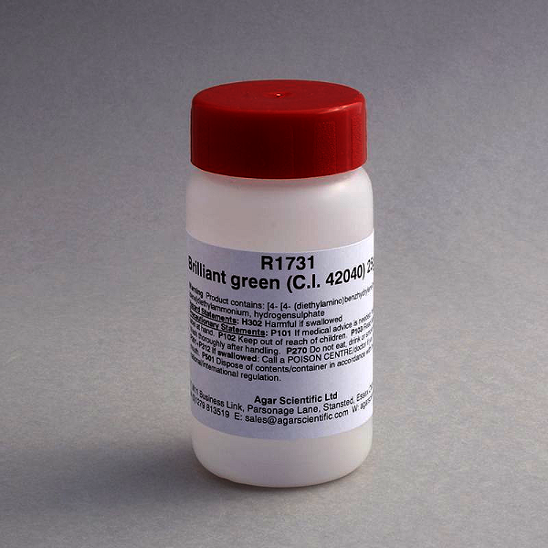 Brilliant green is a basic dye which is soluble in both water and alcohol. It is often used as a counterstain alongside either Eosin Y or Safranine O.