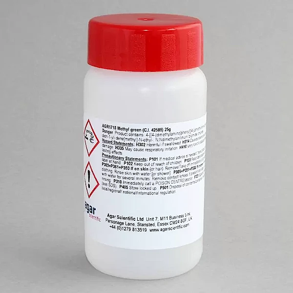 Methyl green is a chromogenic counterstain and stains nuclei acids green.
