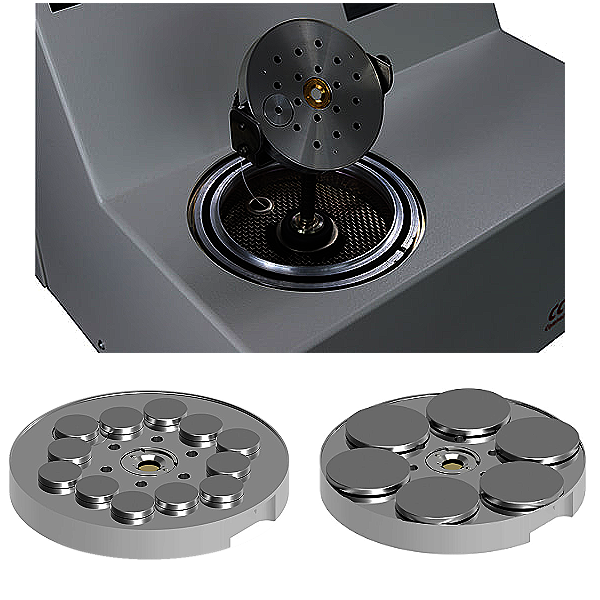 It has a diameter of 80 mm and holds six large( 25.4 mm) or 18 small ( 12.7 mm) SEM pin stubs.